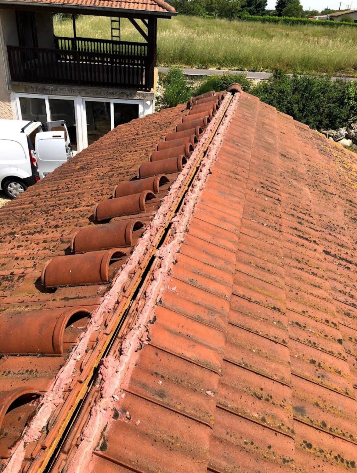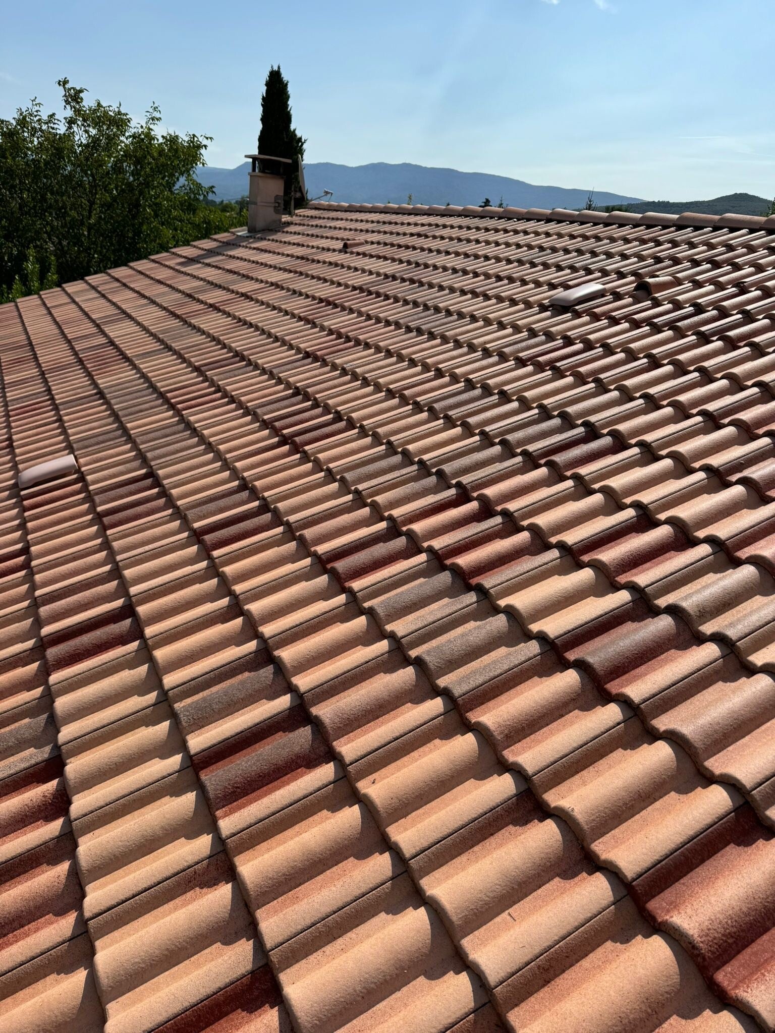 6) Contrôle final & conseils — Vérification des points sensibles (faîtage, solins, entourages de cheminées), test d’écoulement, report photos avant/après et recommandations d’entretien.