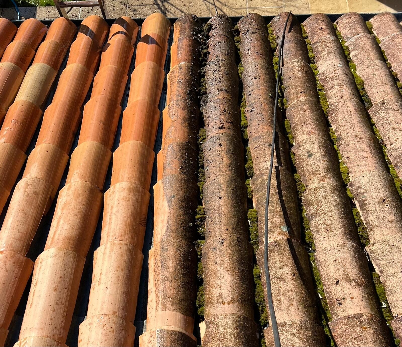 Jamais d’eau de Javel ni produits agressifs qui attaquent tuiles, joints et gouttières.